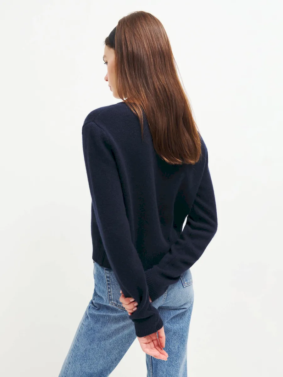 This is a fine-gauge recycled cashmere blend sweater knit – 95% Recycled Cashmere, 5% Cashmere.