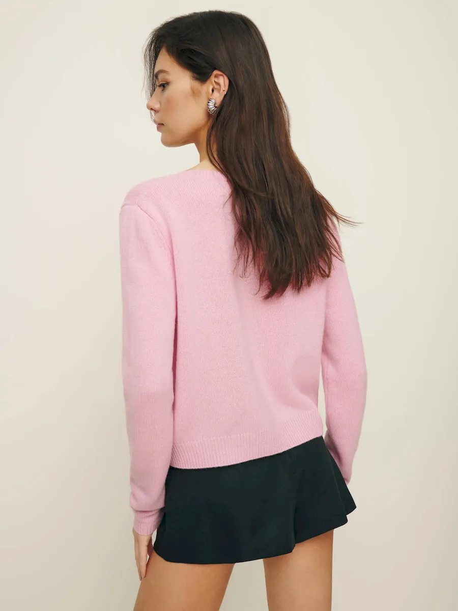 This is a fine-gauge recycled cashmere blend sweater knit – 95% Recycled Cashmere, 5% Cashmere. Hand wash + dry flat. More onfabric & care.
