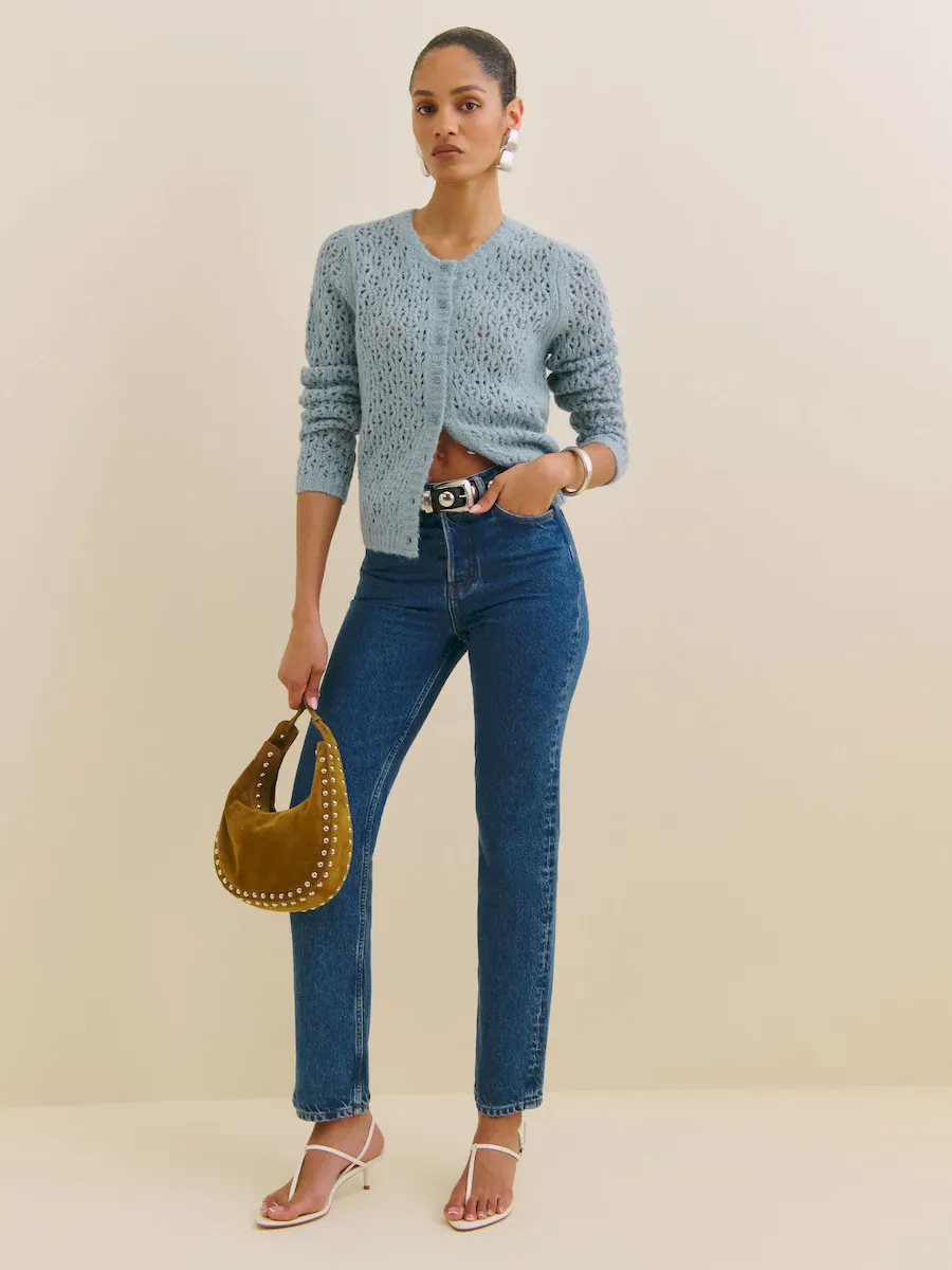This is a soft, slubby alpaca sweater yarn spun in Italy, made from 56% Baby Suri Alpaca, 32% RWS Merino Wool, 8% GRS Recycled Nylon, 4% Nylon.