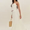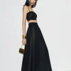 The model is wearing a size 0 and is 5’10”, 24.5″ waist, 34.5″ hips, 31″ bust.