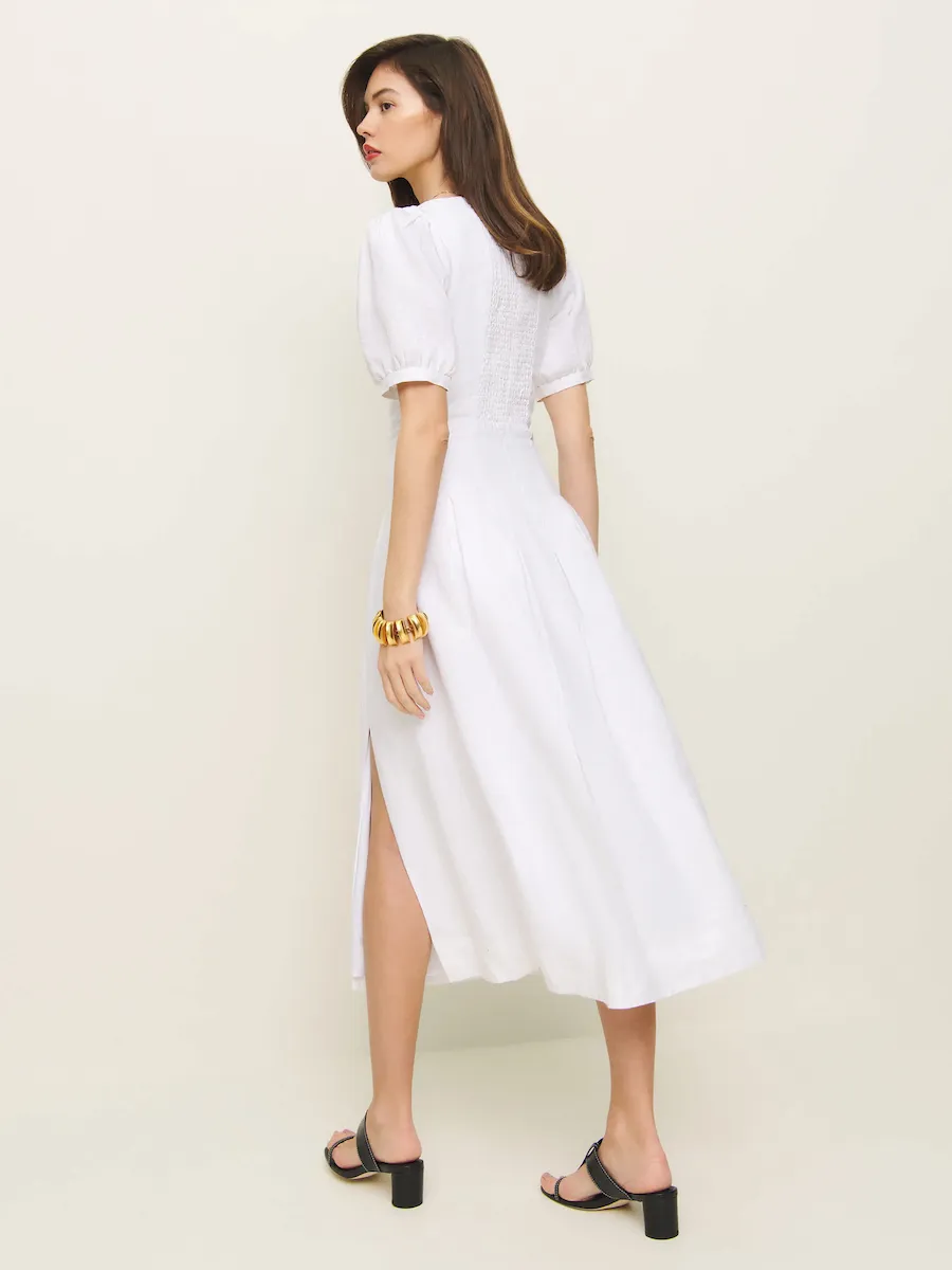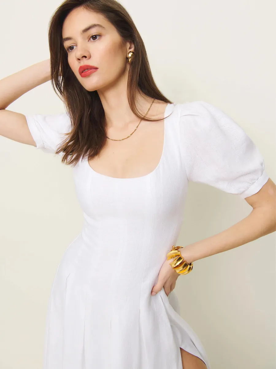 square neckline, front slit.
