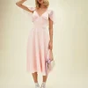 The model is wearing a size 0 and is 5’10”, 23″ waist, 35.5″ hips, 32.5″ bust.