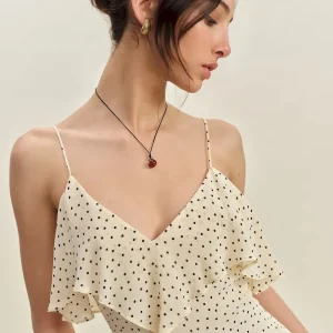 The model is wearing a size 2 and is 5’10”, 23″ waist, 34″ hips, 31″ bust.