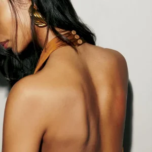 The model is wearing a size 0 and is 5’10”, 23.5″ waist, 34″ hips, 32″ bust.