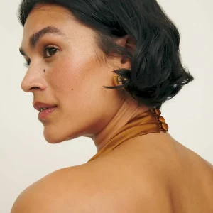 The model is wearing a size 14 and is 5’9.5″, 29″ waist, 43.5″ hips, 39.5″ bust.