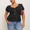 The model is wearing a size XS and is 5’9″, 24″ waist, 34″ hips, 32″ bust.