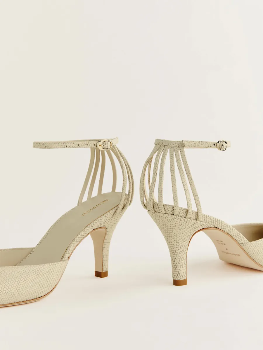 Upper is made from embossed and printed animalier pattern on cow leather.