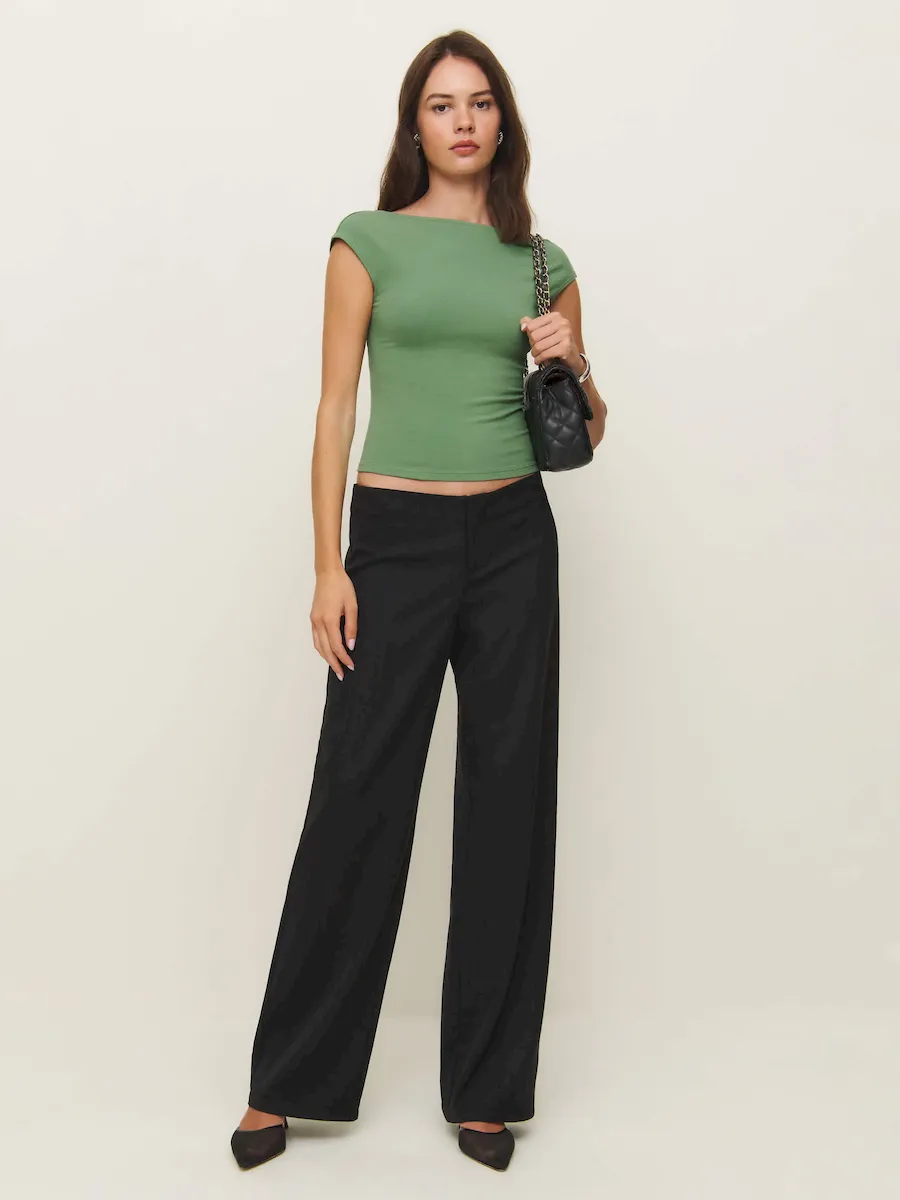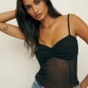 The model is wearing a size XS and is 5’9″, 24″ waist, 34″ hips, 32″ bust.