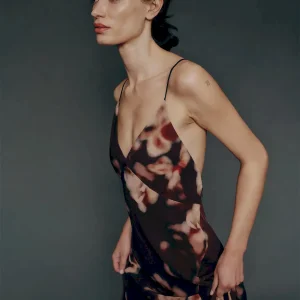 The model is wearing a size 0 and is 5’9″, 24.5″ waist, 35″ hips, 32″ bust.