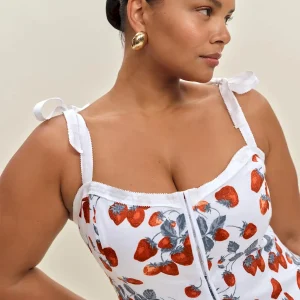 The model is wearing a size 14 and is 5’8″, 33″ waist, 50″ hips, 42″ bust.