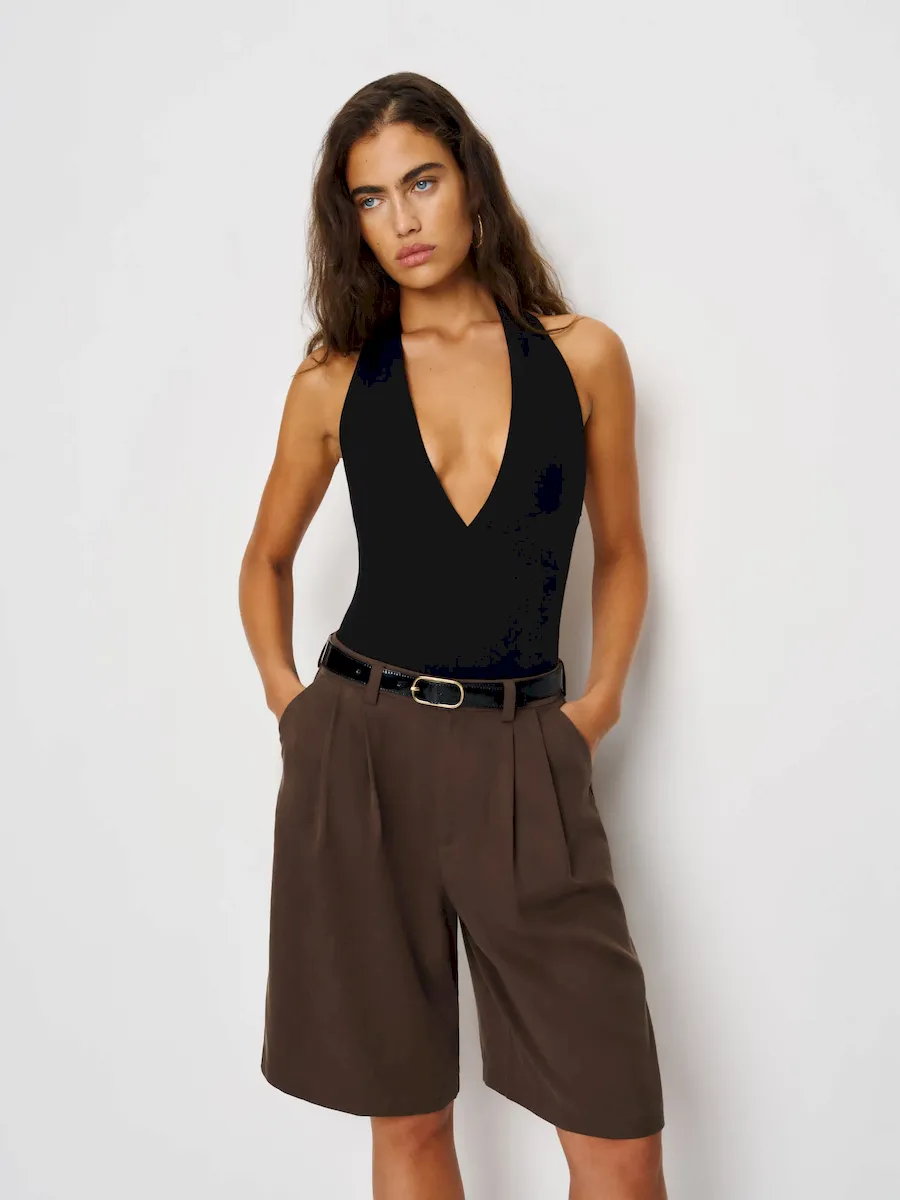The model is wearing a size 2 and has a 25″ waist, 36″ hips.