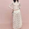 The model is wearing a size XS and is 5′ 9.5″, 24″ waist, 34.5″ hips, 34″ bust.