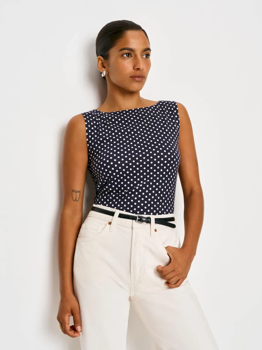The model is wearing a size XS and is 5’3″, 23″ waist, 34″ hips, 31″ bust.