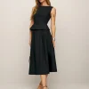 The model is wearing a size 0 and is 5’7″, 23″ waist, 34″ hips, 32″ bust.