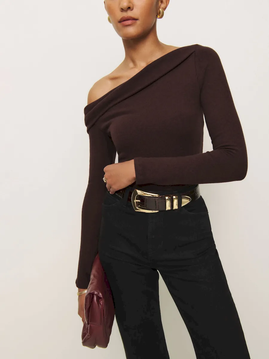 The model is wearing a size XS and is 5’11”, 24″ waist, 34″ hips, 32″ bust.