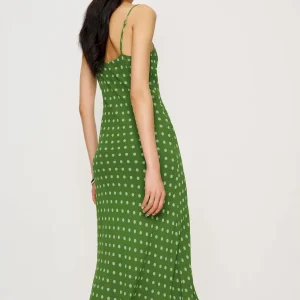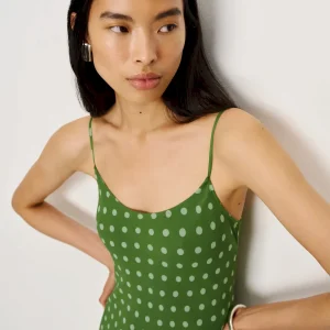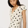 The model is wearing a size XS and is 5’10”, 24.5″ waist, 34.5″ hips, 31″ bust.