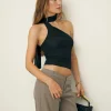 The model is wearing a size 0 and is 5’10”, 23″ waist, 34″ hips, 32″ bust.