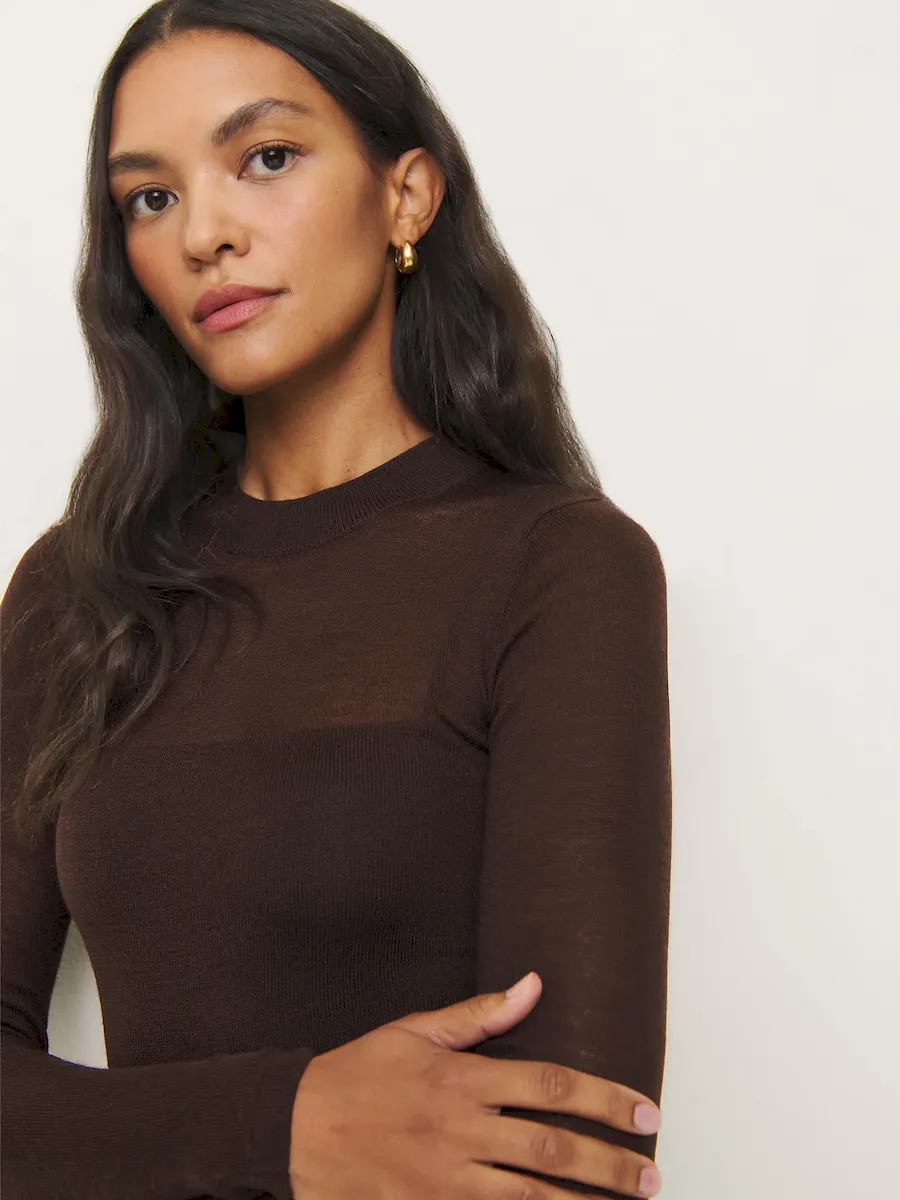 This sweater is made with 100% traceable NATIVA™️ wool sourced from a transitional regenerative farm. Regenerative practices are super different from conventional methods, so it takes a lot of time, effort, and resources to make the switch. We think that regenerative is the future, so we’re excited to support it from the ground up with each sweater we make. Dry clean only. More onfabric & care.