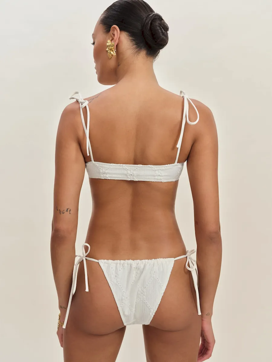 Deadstock Eyelet Fabric: 95% Polyester, 5% Spandex. Handwash, do not bleach, do not dry clean, do not iron, dry in the shade.