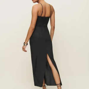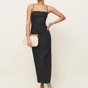 back smocking, adjustable straps, straight neckline, back slit.