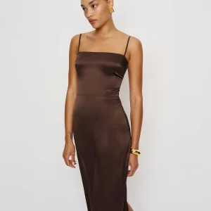 back zipperand high slit.