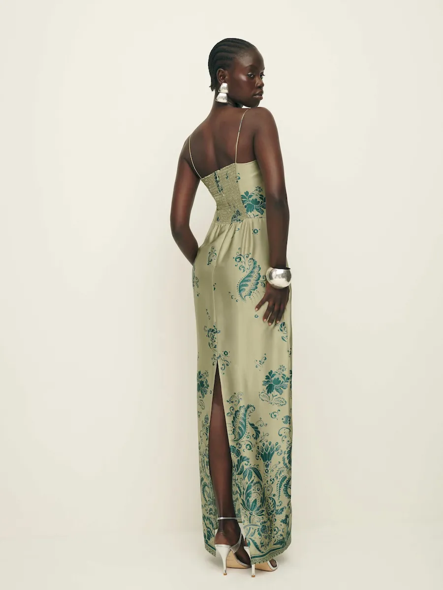 This is a lightweight silk charmeuse fabric – 100% silk. Dry clean only. More onfabric & care.
