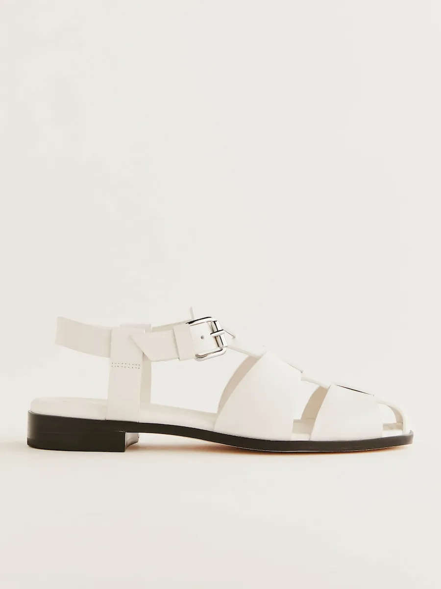 Upper is made from vachetta which is a a firmer leather that will soften with wear and ages beautifully. Spot clean. More onfabric & care.