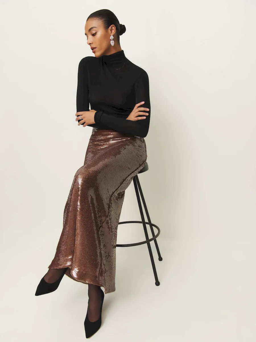 The model is wearing a size 4 and has a 26″ waist, 38″ hips.