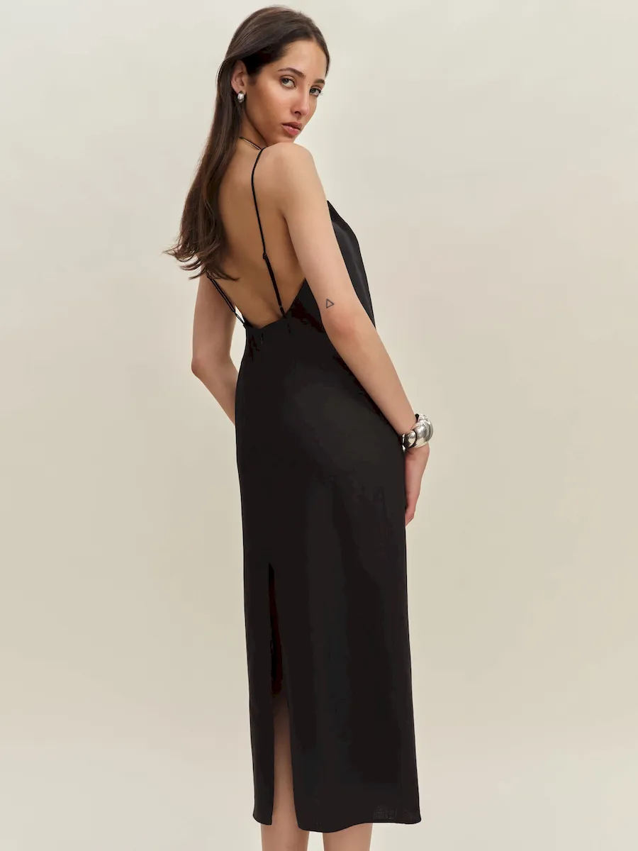 The model is wearing a size 2 and is 5’10”, 23″ waist, 34″ hips, 31″ bust.