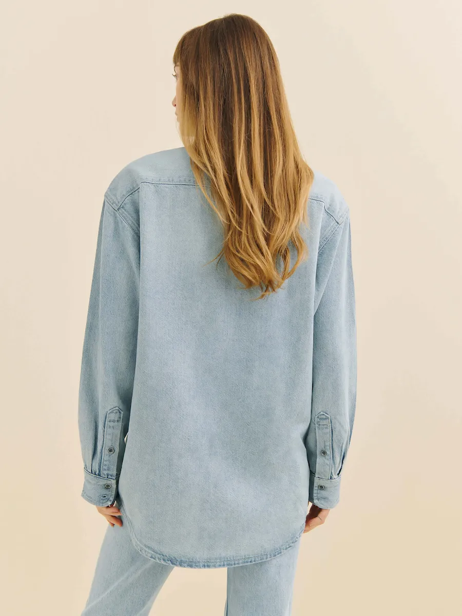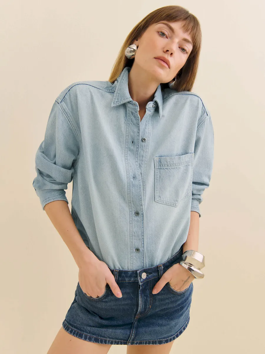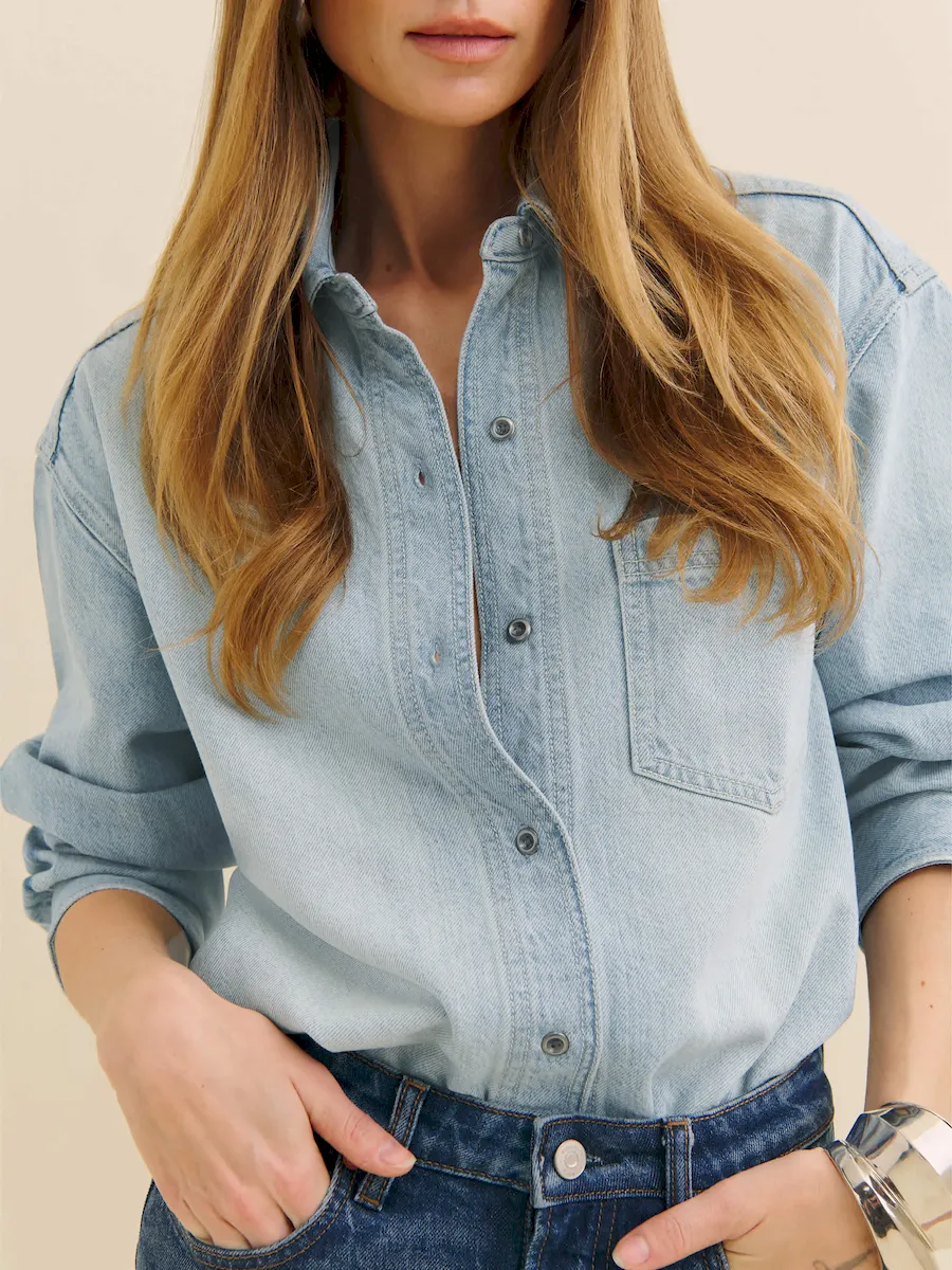 This fabric is a lightweight rigid denim made of 60% Organically Grown Cotton 40% Tencel/Lyocell. Wash cold + line dry. More onfabric & care.