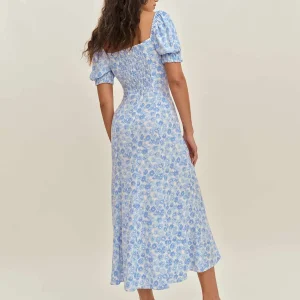 back smocking, square neckline, front slit.
