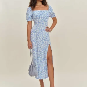 back smocking, square neckline, front slit.