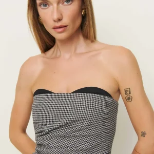 The model is wearing a size 0 and is 5’10”, 25″ waist, 34.5″ hips, 31″ bust.