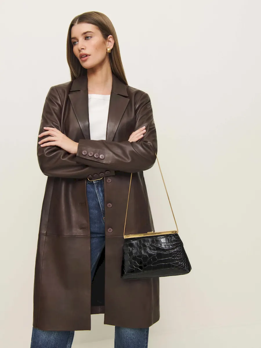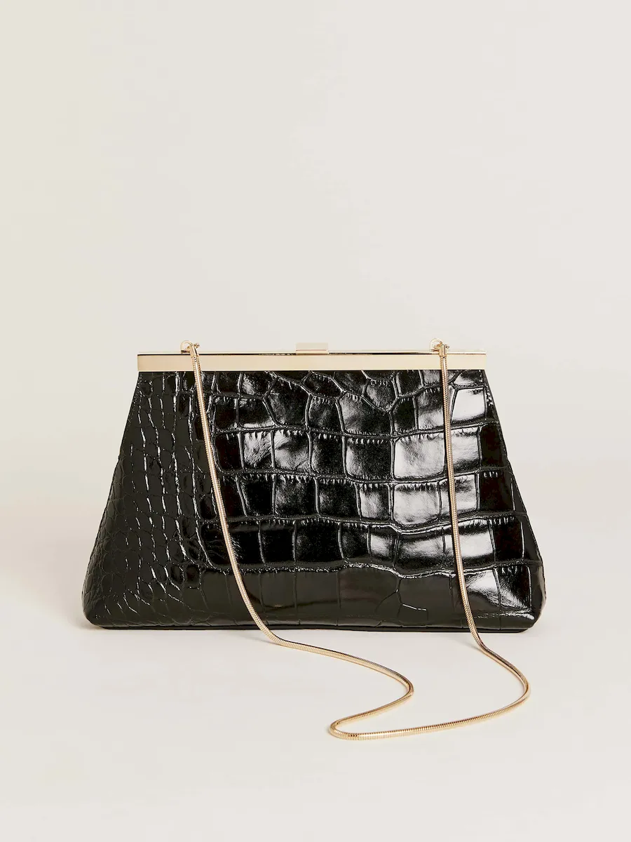 An oversized tailored croc embossed bovine skin.
