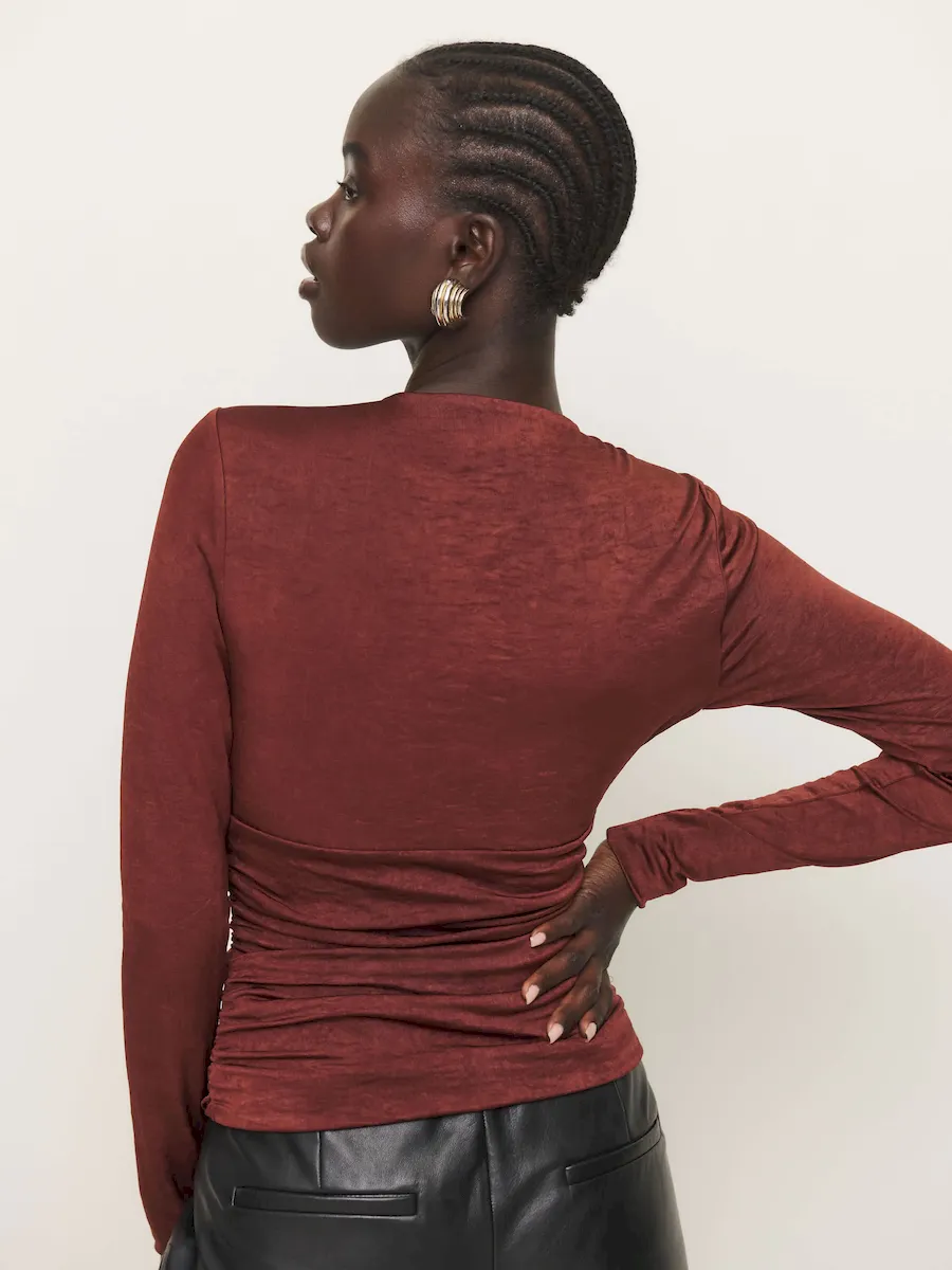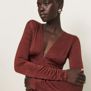The model is wearing a size XS and is 5’10”, 25″ waist, 35″ hips, 32″ bust.