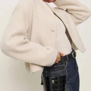 An oversized tailored croc embossed bovine skin.