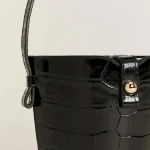 An oversized tailored croc embossed bovine skin. Spot clean. More onfabric & care.