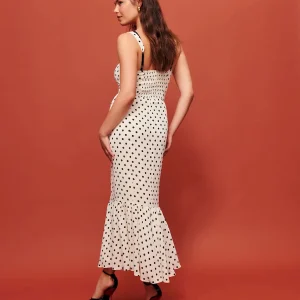 back smocking, adjustable straps, sweetheart neckline, back slit.