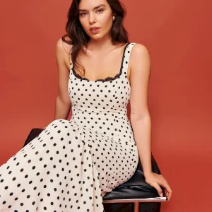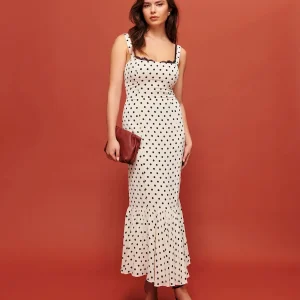 The model is wearing a size 6 and is 5’9″, 27″ waist, 38″ hips, 32″ bust.