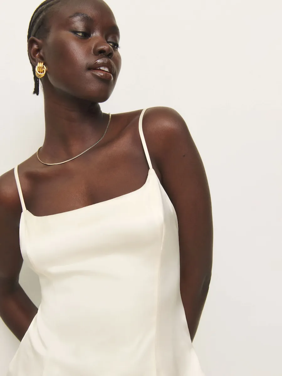 Made with 60% wood pulp and 40% repurposed waste. Feels way smoother and sexier than it sounds. Meet Naia™️ Renew, our silk alternative that cuts carbon and other harmful impacts of silk without changing any of the stuff you love about it.