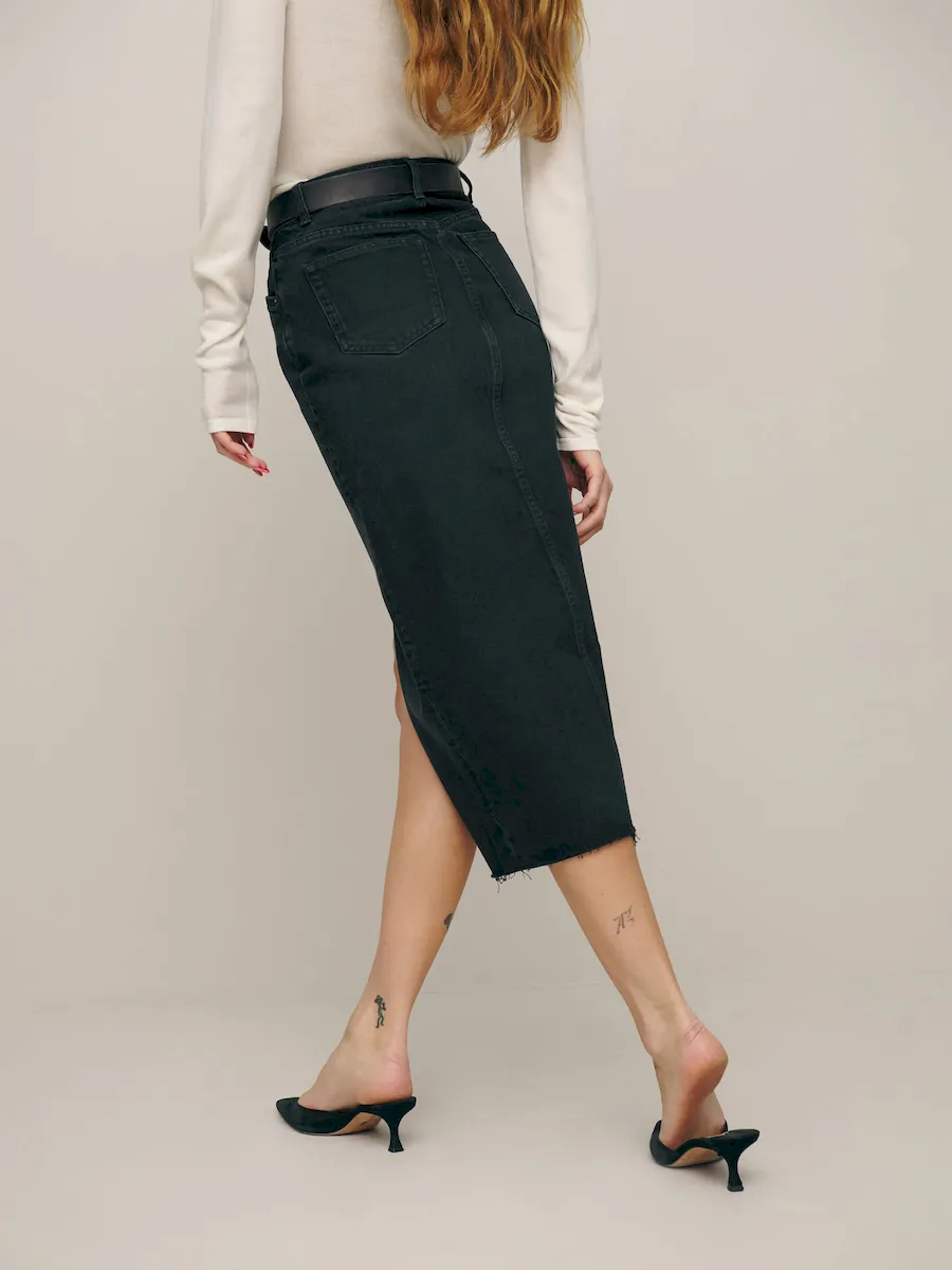 The model is wearing a size 25 and has a 25″ waist, 34.5″ hips.