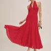 The model is wearing a size 0 and is 5’9″, 24″ waist, 34″ hips, 32″ bust.
