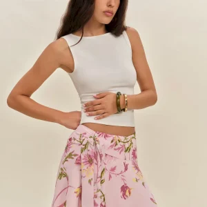 The model is wearing a size 0 and has a 24″ waist, 34.5″ hips.