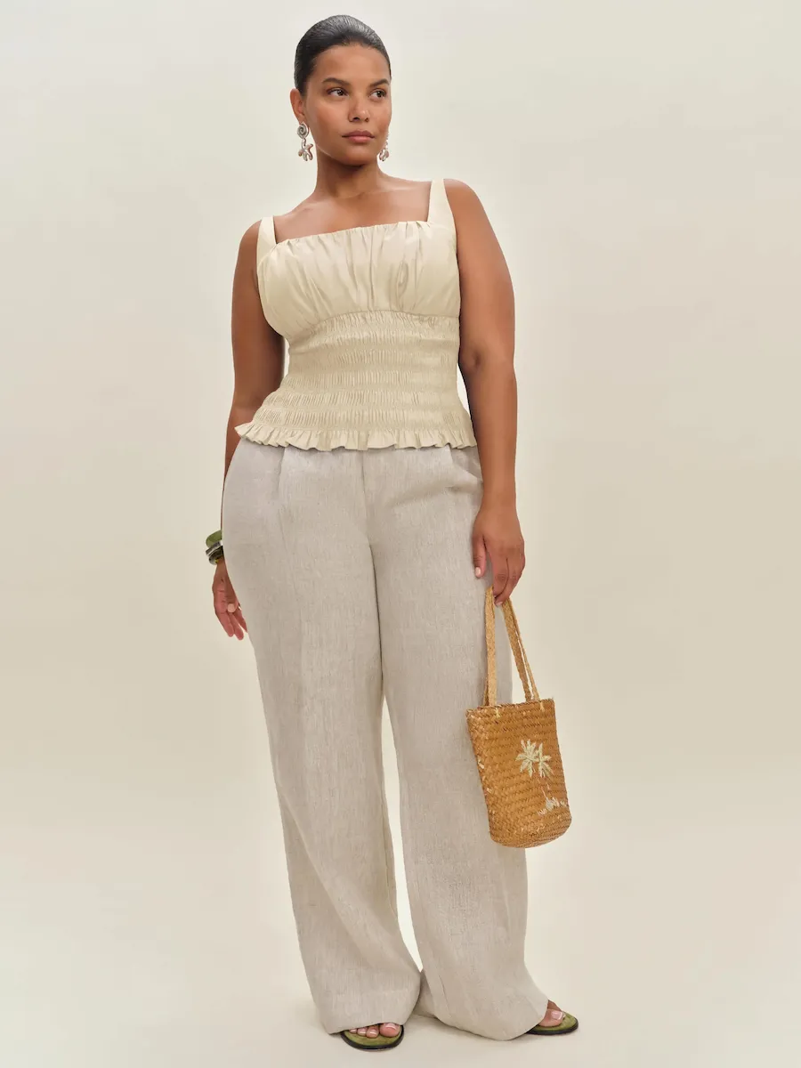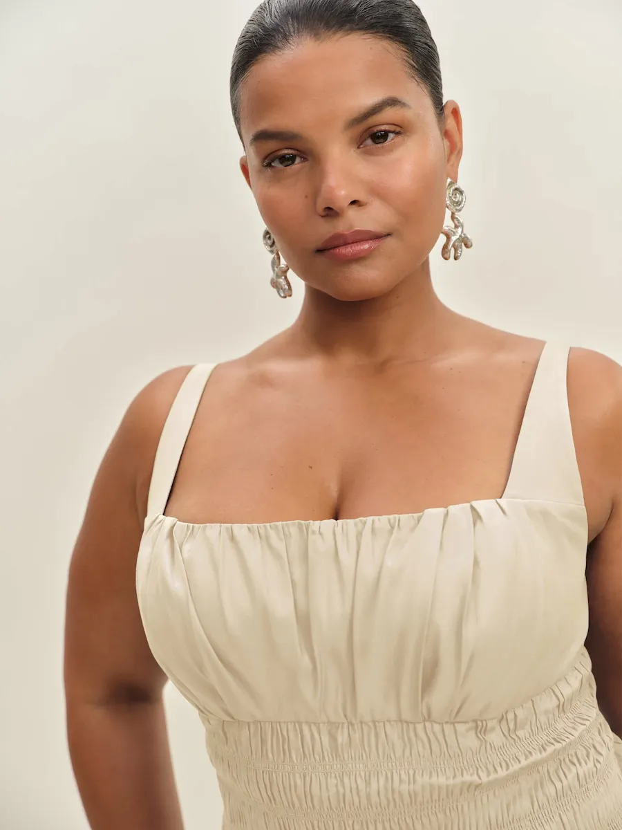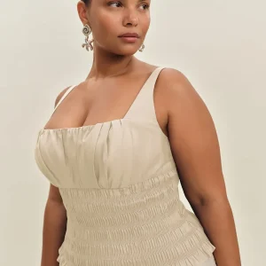 The model is wearing a size 1X and is 5’8″, 33″ waist, 50″ hips, 42″ bust.