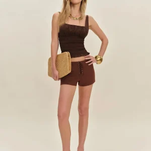 The model is wearing a size XS and is 5’7″, 23″ waist, 34″ hips, 32″ bust.
