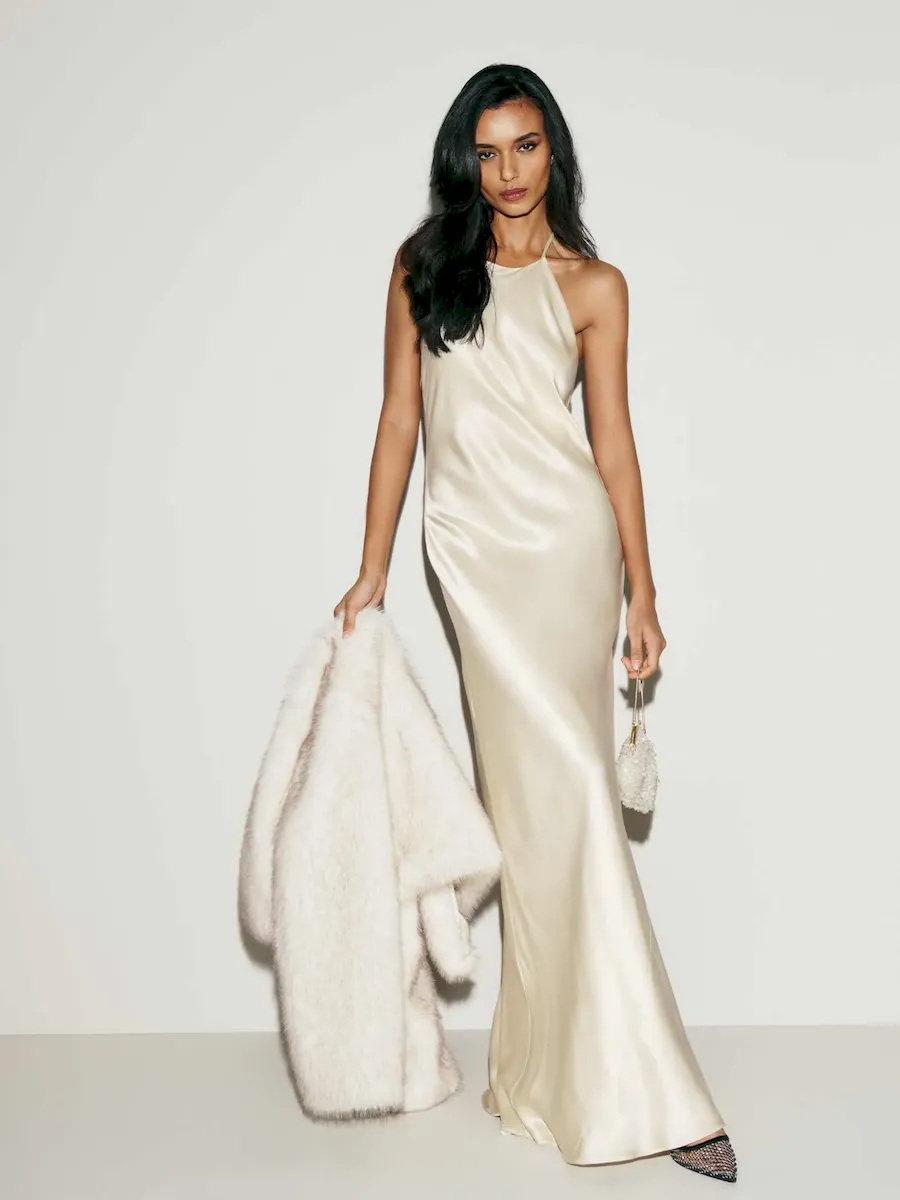 This is a lightweight silk charmeuse fabric – 100% silk. Dry clean only. More onfabric & care.