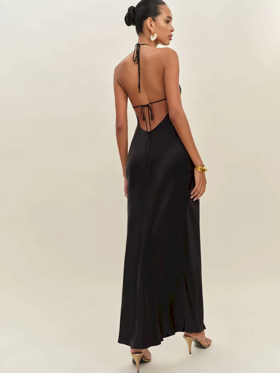 Intended to graze the floor when worn with heels. Hemming may be necessary to achieve desired length.