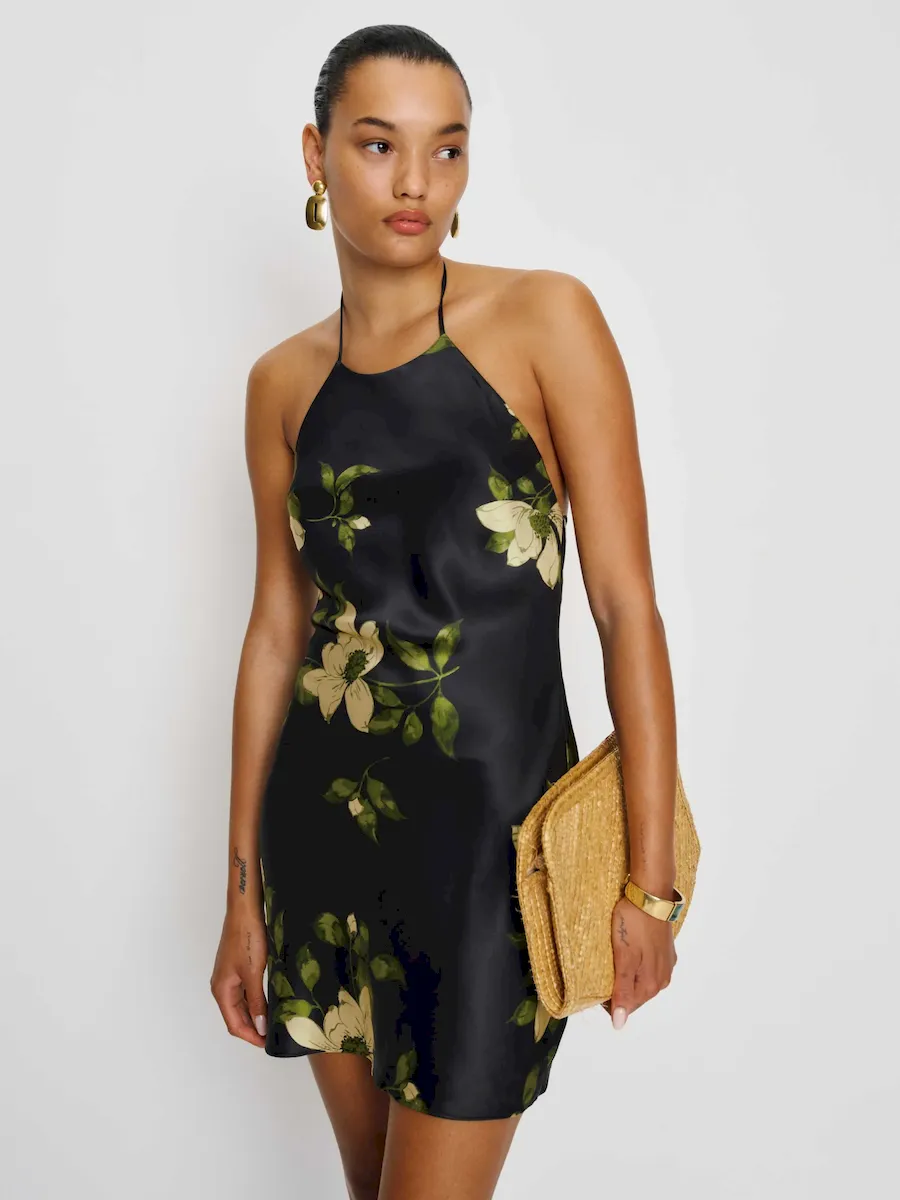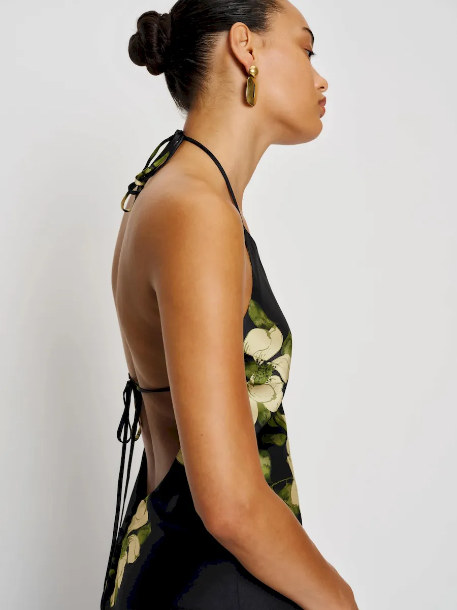 tie straps, halter neckline.