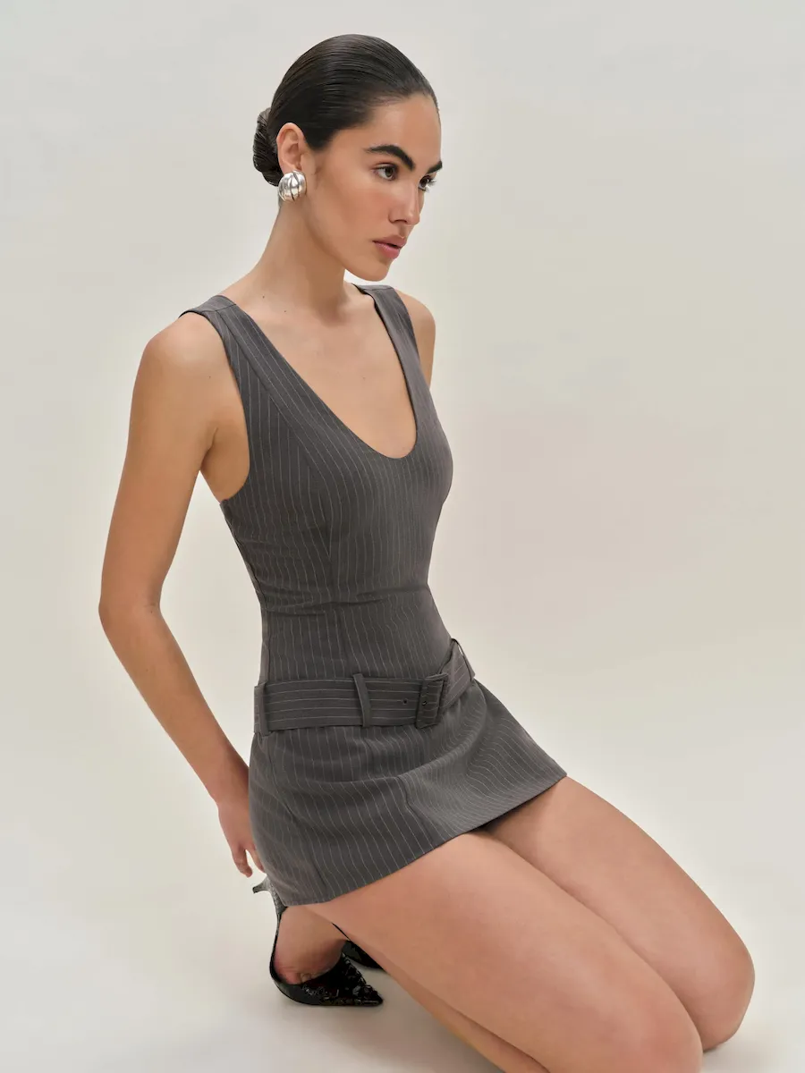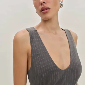The model is wearing a size 0 and is 5′ 9.5″, 24″ waist, 34.5″ hips, 34″ bust.