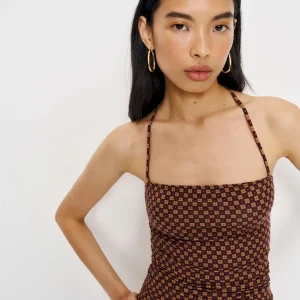 The model is wearing a size XS and is 5’10”, 24.5″ waist, 34.5″ hips, 31″ bust.